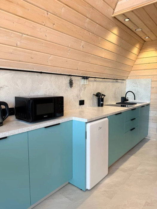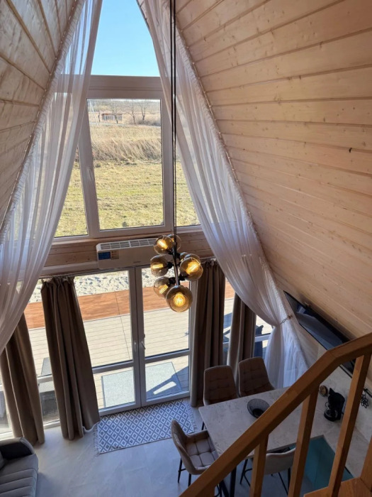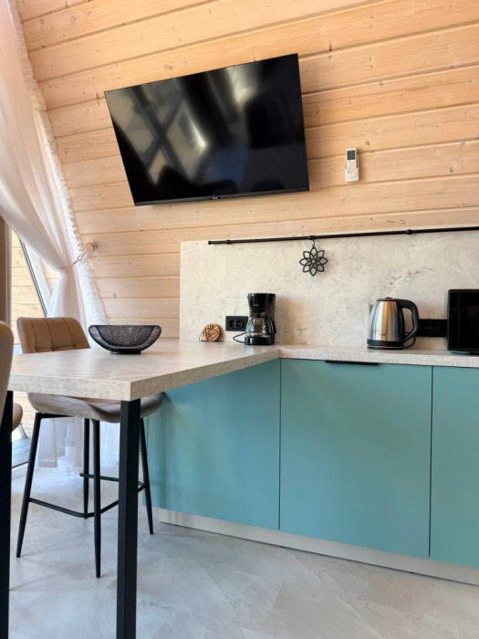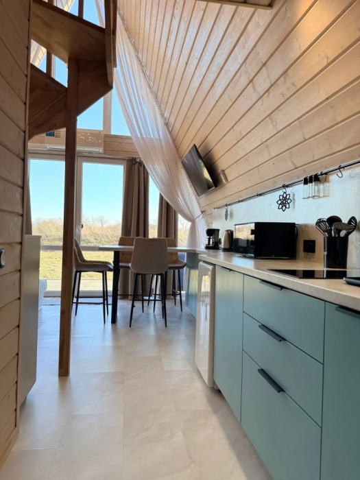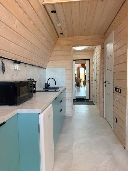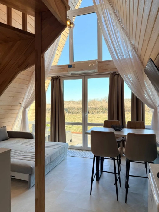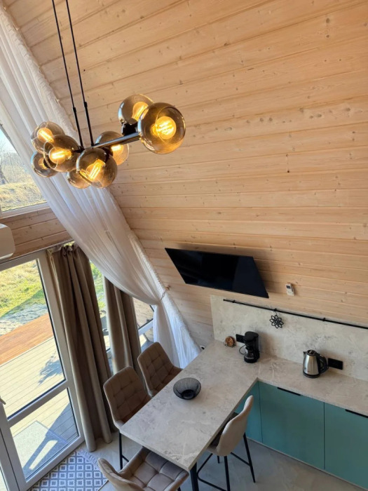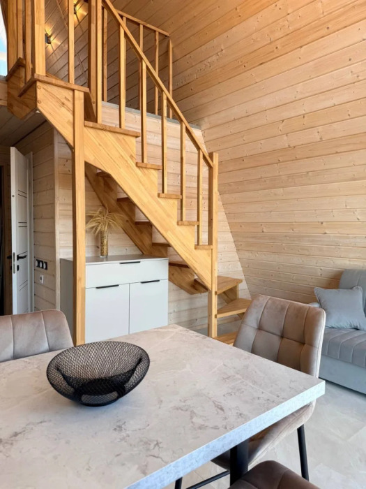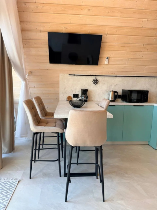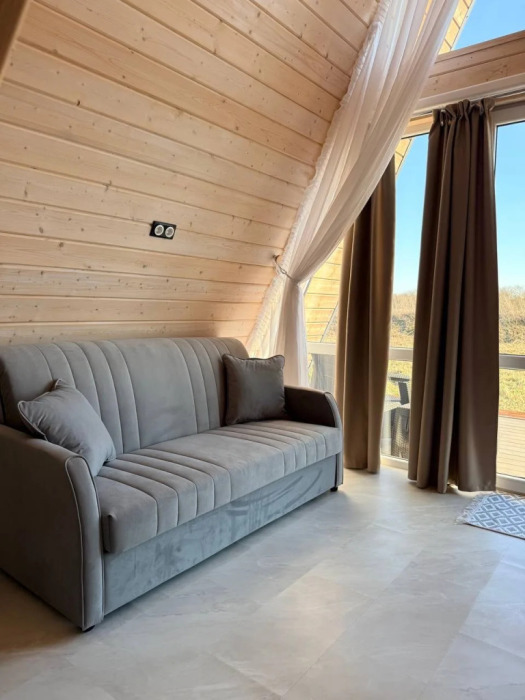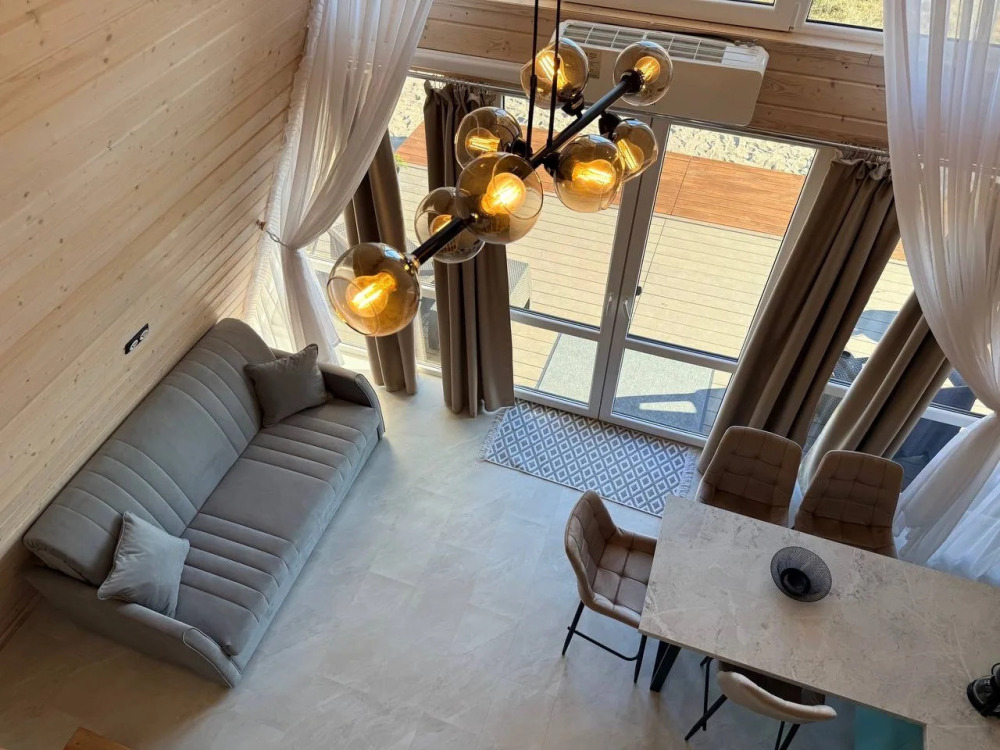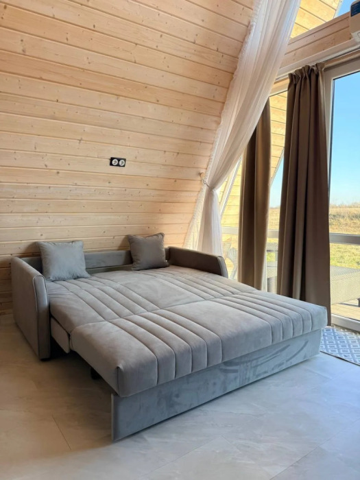 - для небольшой компании или семьи из 4 человек: помимо основных спальных мест, в доме есть удобный раскладной диван шириной 160 см.