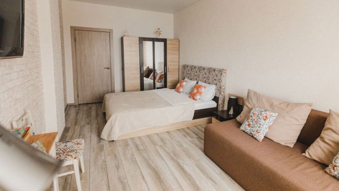 Квартира может вместить до 6 гостей, в спальне двухспальная кровать и раскладной диван, в кухонной зоне- раскладной диван.