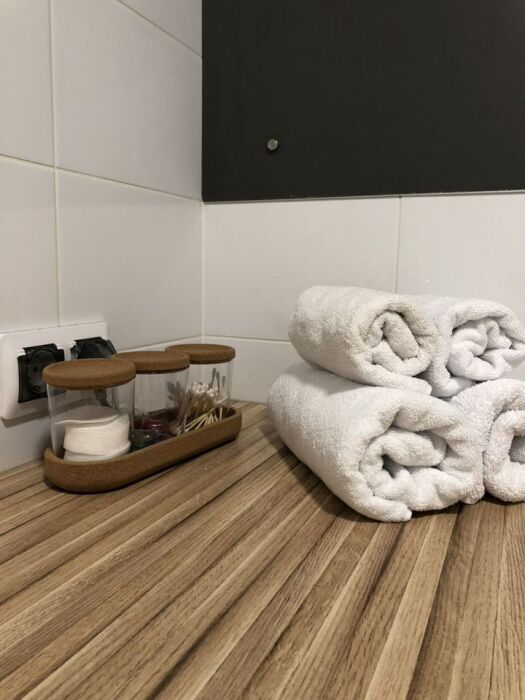 - Белоснежное постельное белье и полотенца;