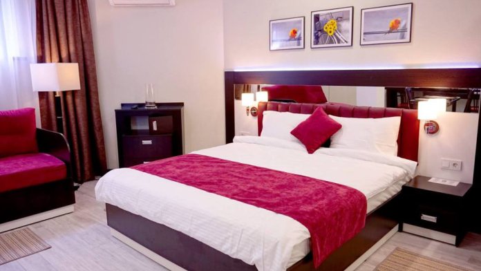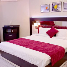 В номере: двуспальная кровать, прикроватные тумбочки, тахта, шкаф-купе, стол, стул, вешалка, зеркало, кондиционер, теплые полы (зимой), сейф, телевизор ЖК, мини-холодильник, электрочайник, микроволновая печь, набор посуды, пляжные полотенца, санузел с душевой кабиной, фен, туалетные принадлежности, тапочки, балкона нет, вид из номера на город, wi-fi, телефонная связь по территории отеля.