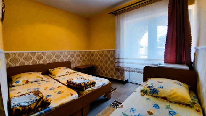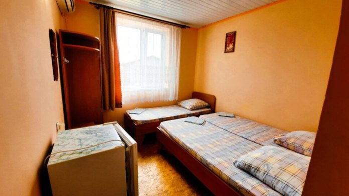 В номере есть журнальный столик, шкаф, окна с москитными сетками, двуспальная кровать или две односпальные