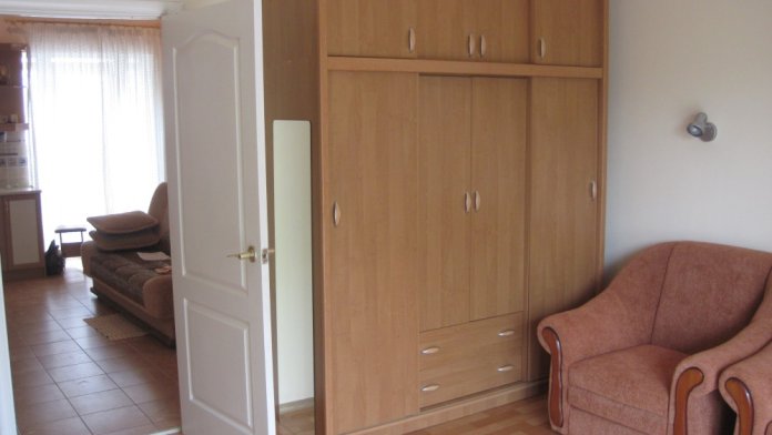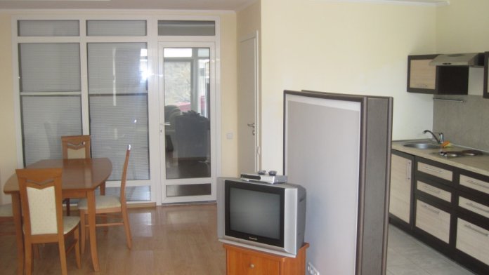 1комнатный номер Полулюкс с кухней. В составе номера имеется оборудованная кухня.имеется кондиционер. Балкон. Спальные места- двухспальный евродиван трансформер . Возможно доп место . Рассчитан на пребывание 2-3 человек или 2 родителей и ребёнка .