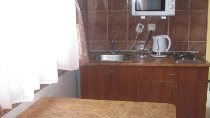 2 комнатный номер люкс с кухней- это семейный номер расположен на 1 этаже - имеет отдельный вход что очень удобно для семейного проживания с детьми. Номер площадью -50 м2- в составе которого имеется оборудованная кухня- электроплита - расширенный Ассортимент посуды. Микроволновая печь.двухкаменрный холодильник. Одна комната - классическая спальня - установлена двухспальная кровать вторая комната холл студия с кухней- установлен двухспальный евродиван трансформер.. Имеется кондиционер--возможно установить доп место . Спутниковое телевидение.цену уточнять.