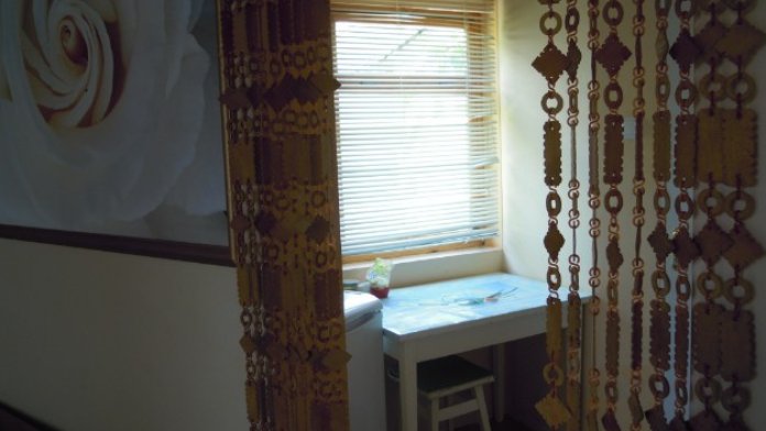 Мебелированная кухня со всей необходимой посудой, газ для самостоятельного приготовления пищи.
