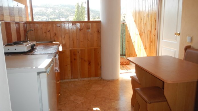 НОМЕР С ЛИЧНОЙ КУХНЕЙ(с полным набором посуды,плитой холодильником и мягким уголком внутри,,САНУЗЛОМ,БАЛКОНОМ,КОНДИЦИОНЕРОМ ВНУТРИ.