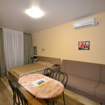 Номерной фонд состоит из комфортных и просторных, одно- и двухкомнатных апартаментов-студий со всеми удобствами, кондиционерами и бесплатным Wi-Fi.
