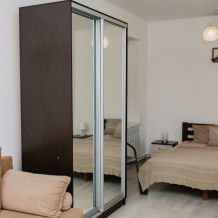 – двуспальная кровать с ортопедическим матрасом, раскладной диван, платяной шкаф;