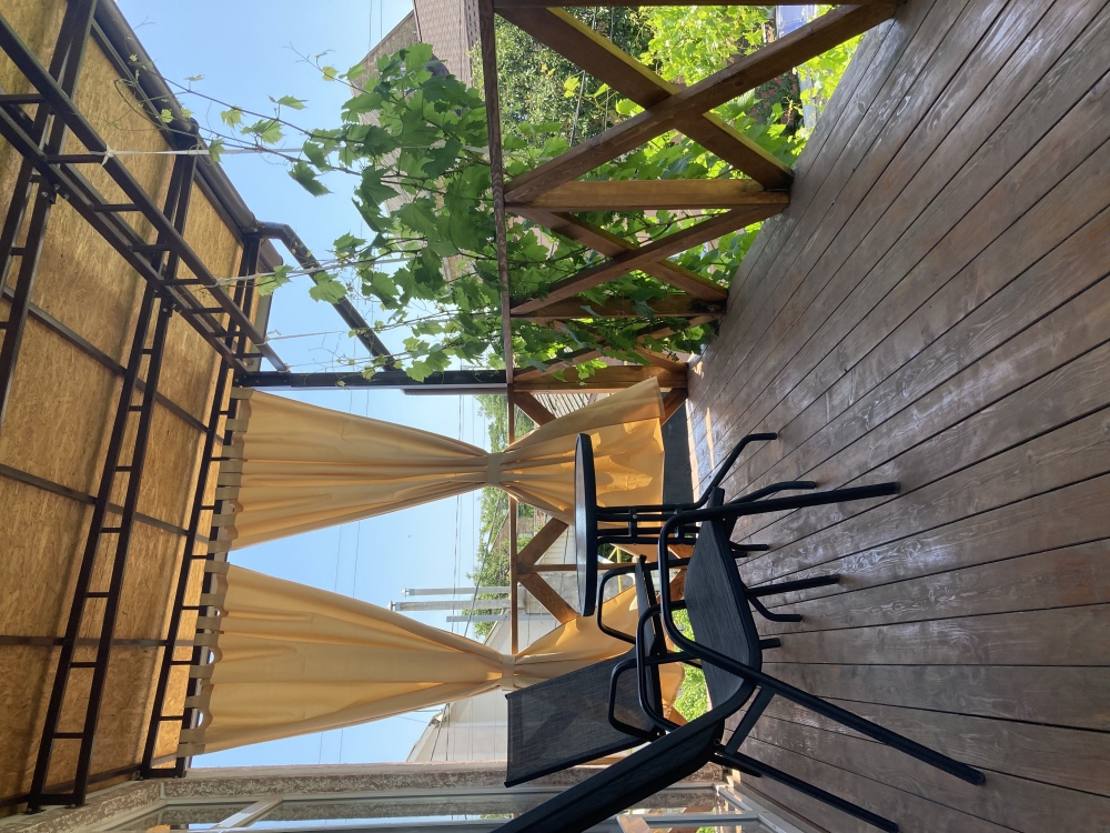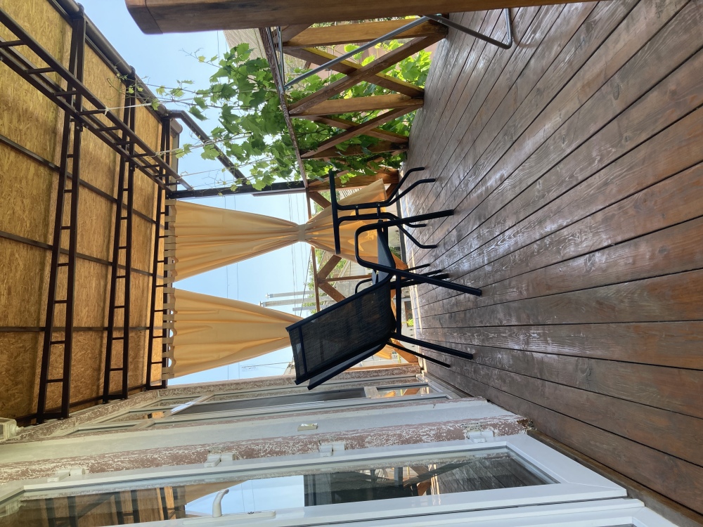 На общей кухне предоставлен необходимый набор посуды и техники (в том числе машина-автомат стиральная). На территории есть красивая терраса, где можно отдыхать, для романтического ужина разрешается пользоваться мангалом, барбекю.