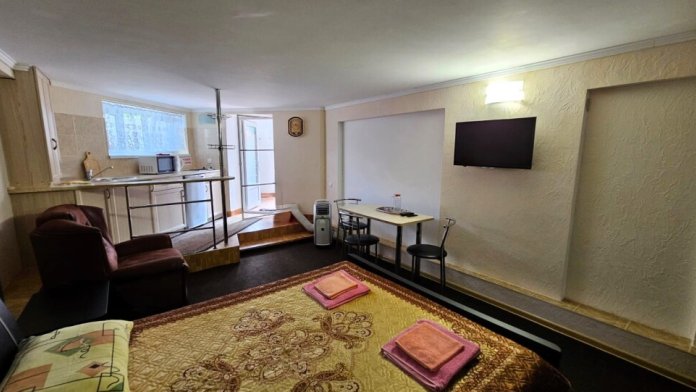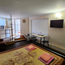 Однокомнатные апартаменты расположенные в цокольном помещении, площадь номера 25 кв.м.. Рассчитаны на комфортный отдых до трёх человек. Комфортное и уютное помещение со всеми удобствами. В номере расположены: кухня, санузел с душевой кабинкой, кондиционер, холодильник и телевизор. Так же в бесплатное пользование предоставляется спутниковое телевидение, Wi-Fi.