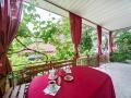 Природный номер на 1 этаже с летней полноценной кухней (индивидуальные посуда, холодильник, столовые приборы, полочки для продуктов) и террасой в окружении виноградной лозы.