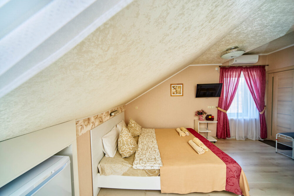 Комнаты гостевого дома могут быть выбраны исходя из Ваших потребностей: это могут быть комнаты-студии с индивидуальной кухней, комнаты с летней кухней или комнаты с мини-кухней. В каждом комнате индивидуальный санузел и душ, удобные спальные места с ортопедическими матрацами, наличие фена и сейфа.