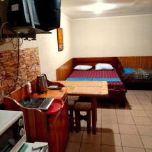 Комфортабельные, номера, обустроенные всем необходимым: новая мебель из натурального дерева, телевизор (ТВ) - кабельное телевидение, бесплатный доступ в интернет, свой двор, мангал. В номере свой санузел и душевая кабинка. Горячая и холодная вода подается круглосуточно. Общая кухня-столовая, оборудована всем необходимым: холодильником, микроволновой печью, электро-чайником, стекло керамической плитой для самостоятельного приготовления пищи и всеми столовыми принадлежностями.Во дворе есть место для отдыха.