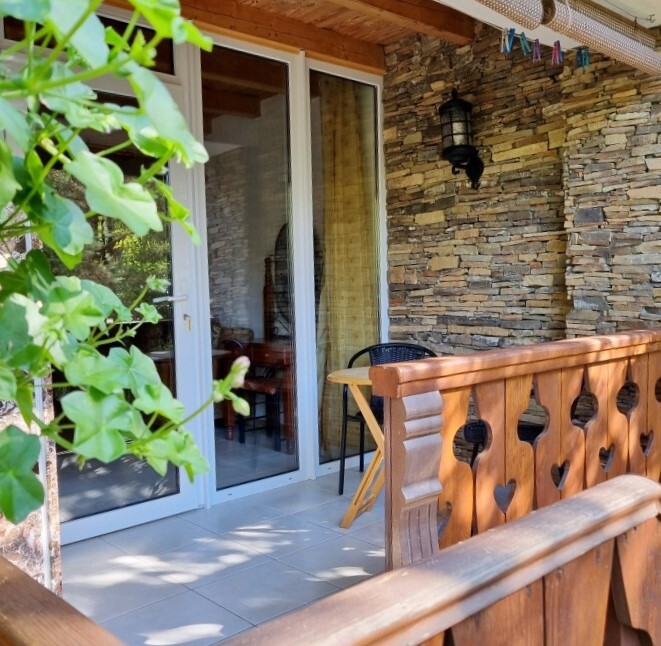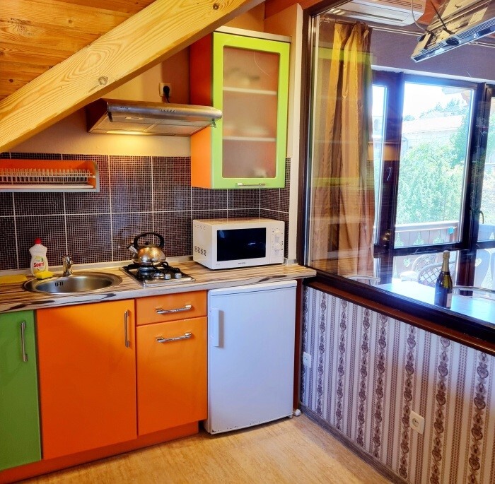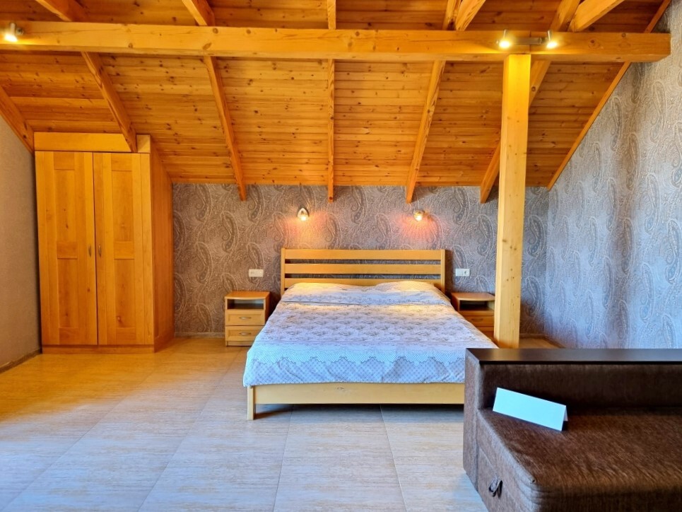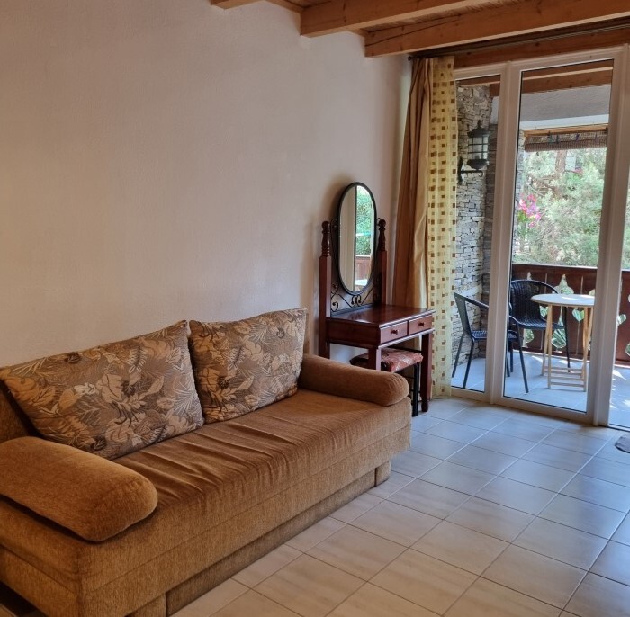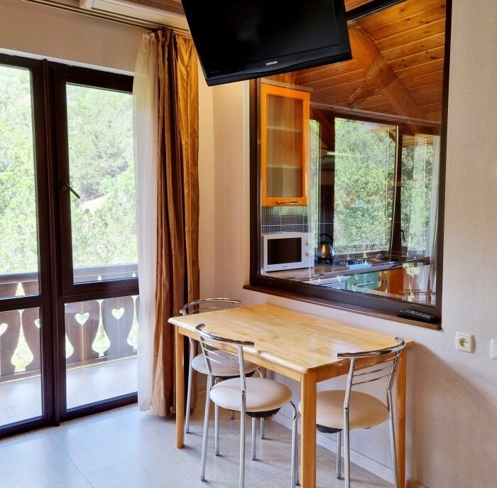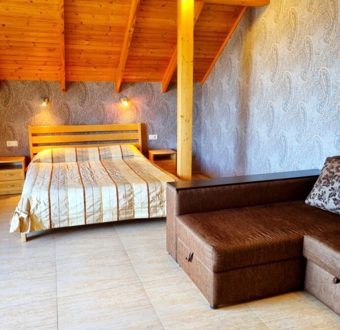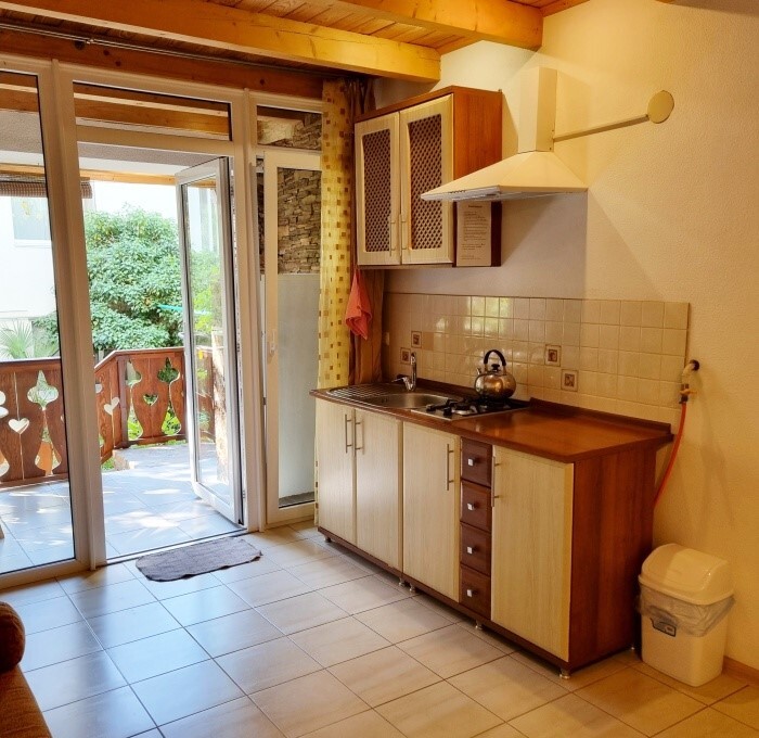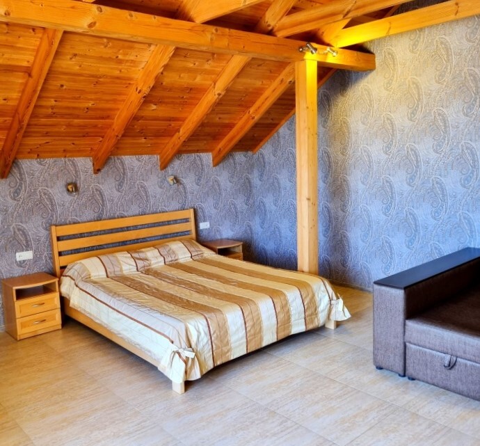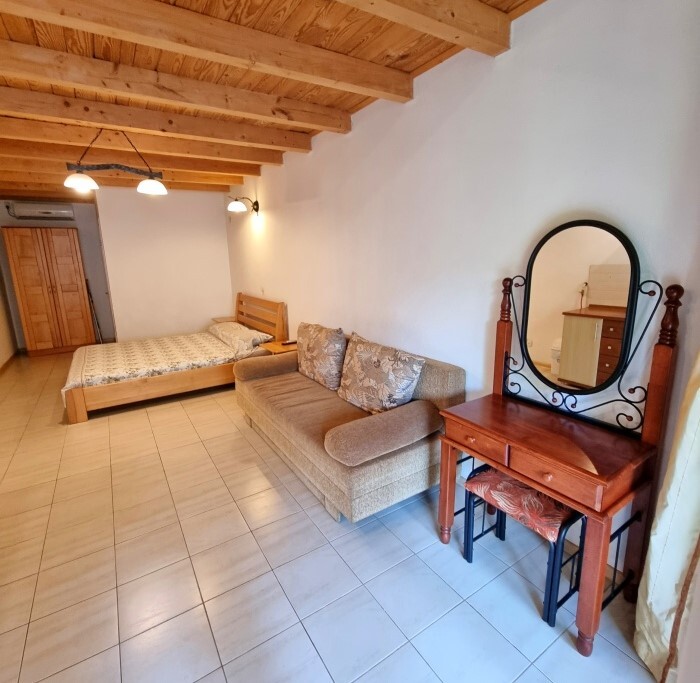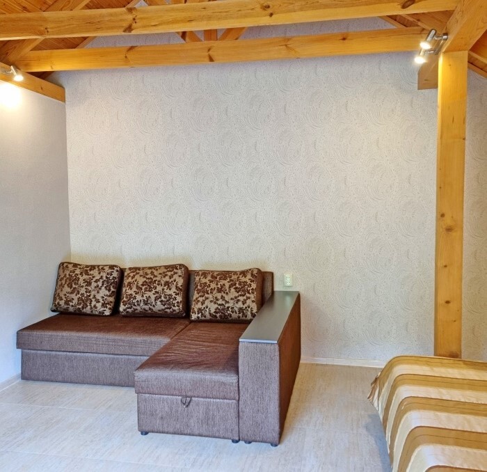 Апартаменты Studio имеет отдельный вход и уютную террасу со столом и креслами. В апартаментах: двуспальная кровать(160*200), раскладной диван (150*200), платяной шкаф, телевизор с кабельным ТВ, туалетный столик, утюг, гладильная доска, Wi-Fi интернет, кондиционер.