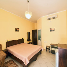 Семейный - это две комнаты со всеми удобствами. Вход идет через индивидуальную большую террасу увитую зеленью, на террасе находится кухня