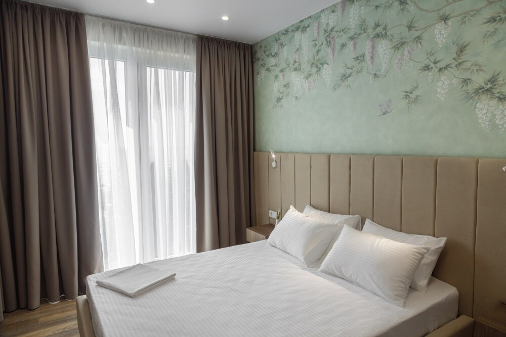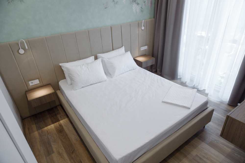 Уютный двухкомнатный просторный номер с гостиной и собственной террасой, панорамным видом на море, расположенный на 2 этаже корпуса отеля. Оптимальный вариант для троих гостей, семей с детьми или для тех, кто хочет разместиться в более просторном номере