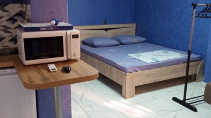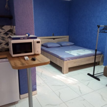 Новый номер-студия со своей кухней. На первом этаже со своим балконом. Диван раскладывается.