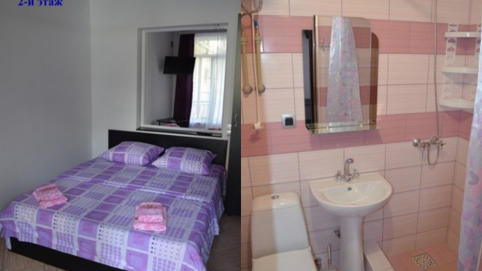 Два соседних номера-люкс с кухней и балконом можно снимать как отдельный дом для компании из 7 человек. (3-местный+4-местный номер). Стоимость на июль август 4700-4800 руб/сут за весь этаж.