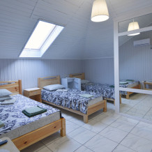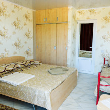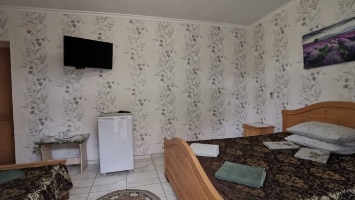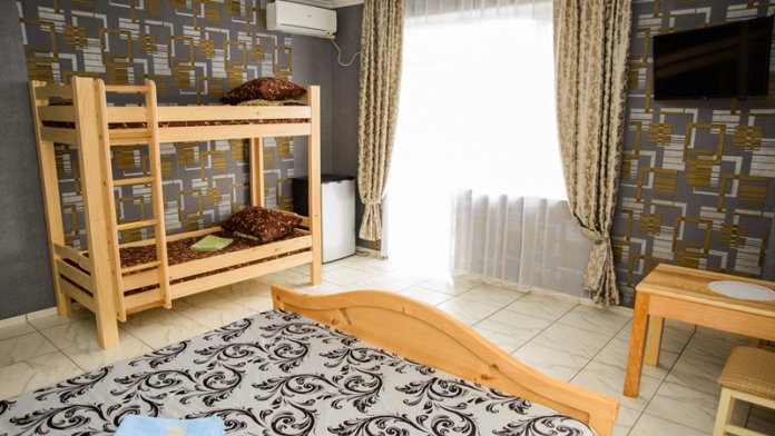 На этаже своя кухня, балкон, терраса со столиками, два раздельных 3-4-местных номера люкс. В каждом свой санузел, жк-тв, кондиционер, холодильник.