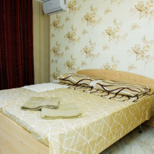 Эконом номер с двуспальной кроватью и балконом находится на 4-м этаже. В номере двуспальная кровать две тумбочки, вешалка для одежды, тв, канальный кондиционер.