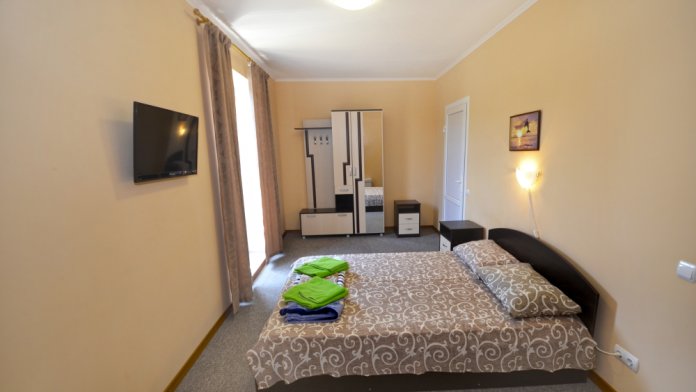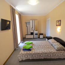 Это комфортабельные современные номера. Каждый номер оборудован удобной мебелью (двуспальная и односпальная кровать), современной сантехникой, кондиционером, холодильником, кабельным телевидением. В каждом номере есть балкон с видом во двор, есть бесплатный Wi-FI.