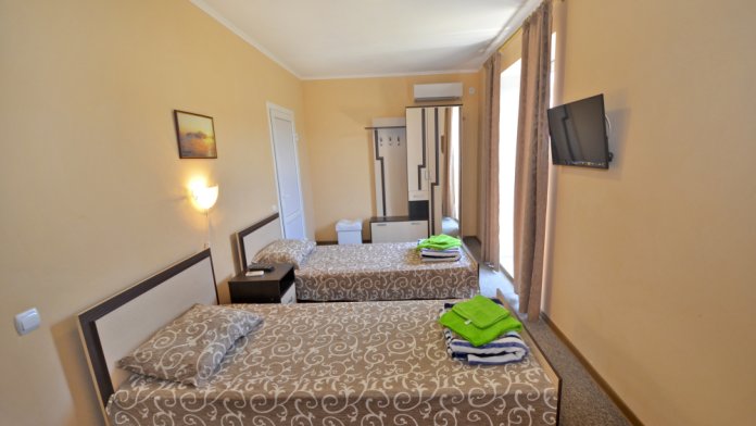Это комфортабельные современные номера. Каждый номер оборудован удобной мебелью (три односпальные кровати шириной 90 см), современной сантехникой, кондиционером, холодильником, кабельным телевидением. В каждом номере есть балкон с видом во двор, есть бесплатный Wi-FI.
