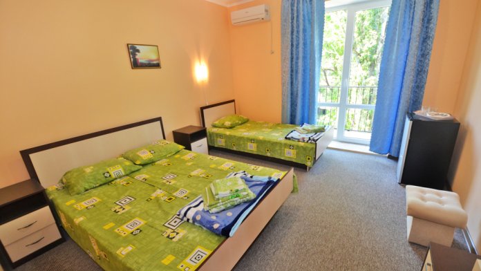 Сдаются двухместные и трехместные номера со всеми удобствами. В каждом номере есть телевизор, холодильник, кондиционер, необходимый набор посуды, санузел и душ. Постельное белье и полотенца - бесплатно. Все номера с балконом.