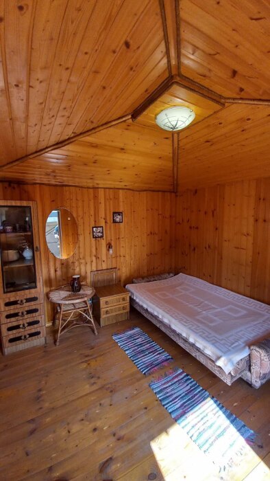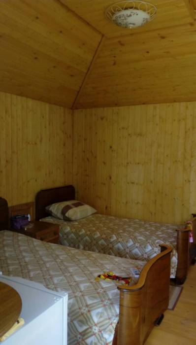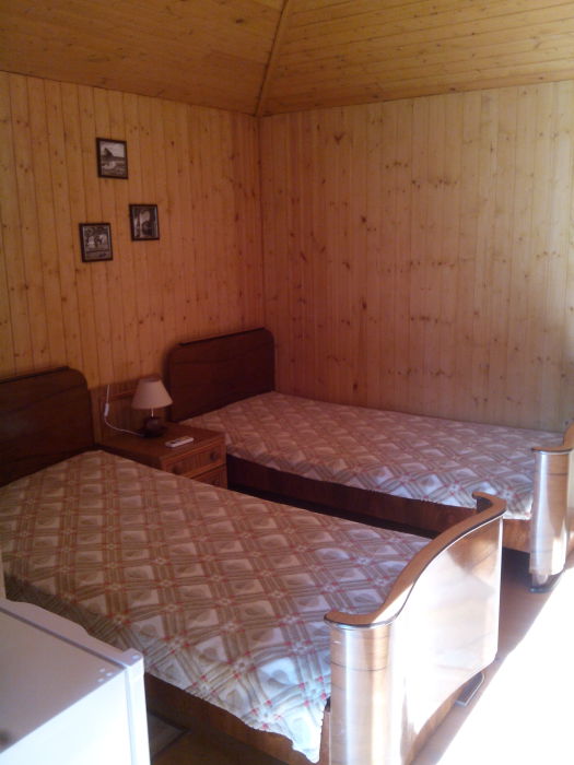 В вашем распоряжении домик на два-три человека,в одном домике две полуторные кровати + доп.место ( еврораскладушка для ребенка до 13 лет) бесплатно, во втором домике диван кровать+ доп. место так же для ребенка , у каждого домика имеется своя кухонная зона, а ванная комната (душевая кабинка) и сан.узел на два домика.