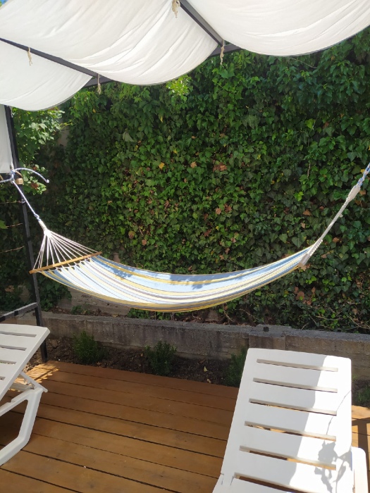 Закрытый большой двор, имеется интернет, летняя кухня, навес, гамак, мангал, место для парковки, рядом магазин, супермаркет, рынок, банки, аптеки, кафе.
