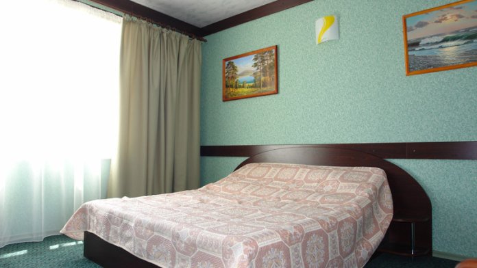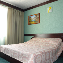 Однокомнатный двухместный номер 24 м.кв. В номере двуспальная кровать, есть возможность поставить евро раскладушку. Также в номере есть душевая кабина и туалет. Из бытовых приборов телевизор, холодильник и кондиционер .