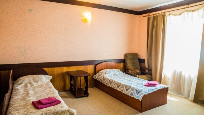 Однокомнатный двухместный номер 24 м.кв. В номере две односпальные кровати , есть возможность поставить евро раскладушку. Также в номере есть душевая кабина и туалет. Из бытовых приборов телевизор, холодильник и кондиционер .