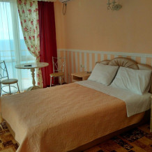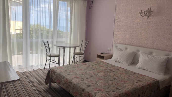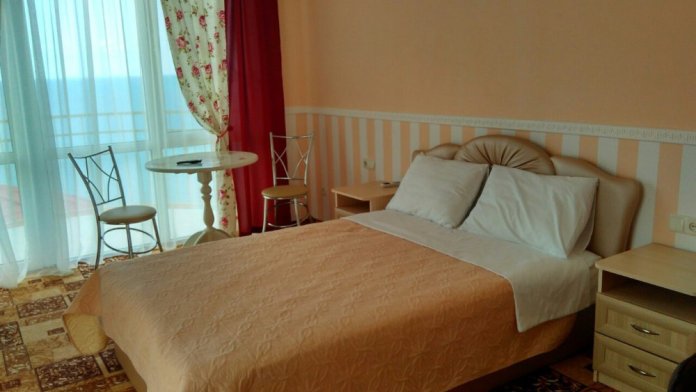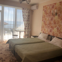 Отдых в уютных номерах, Абсолютно новый гостевой дом. Отрытый для гостей с 01 июня 2017 года. Полностью укомплектованных всем необходимым. Из окон всех номеров открывается изумительный вид на море и крымское побережье и на горы. 120 метров от моря. Слышно шум волн, и южный морской хвойный воздух. Охраняемая территория, собственный пляж. Очень чистый и удобный заход в море. Мелкая галька.