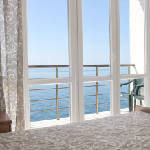 Есть номера, окна которых выходят на гору Ай-Петри и гору Кошку, но большинство номеров с видом на море. Если хотите готовить сами и чувствовать себя как дома – есть номера с оборудованными кухням.