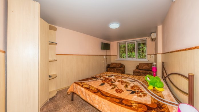 В каждом номере: односпальные кровати, диван-кровать, стулья, шкаф, прикроватные тумбочки, стол, зеркало, сплит-система, посуда.