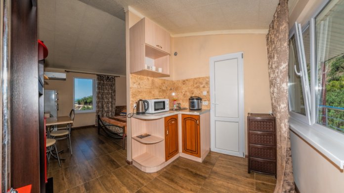 К услугам отдыхающих гостевого дома общая кухня (предоставляется только для гостей 1 коттеджа - эконом-номера без вида на море), зона барбекю с мангалом и тандыром, а также беседка для дружеских вечерних посиделок за бокалом ароматного крымского вина.