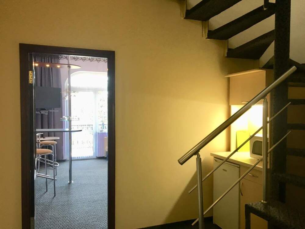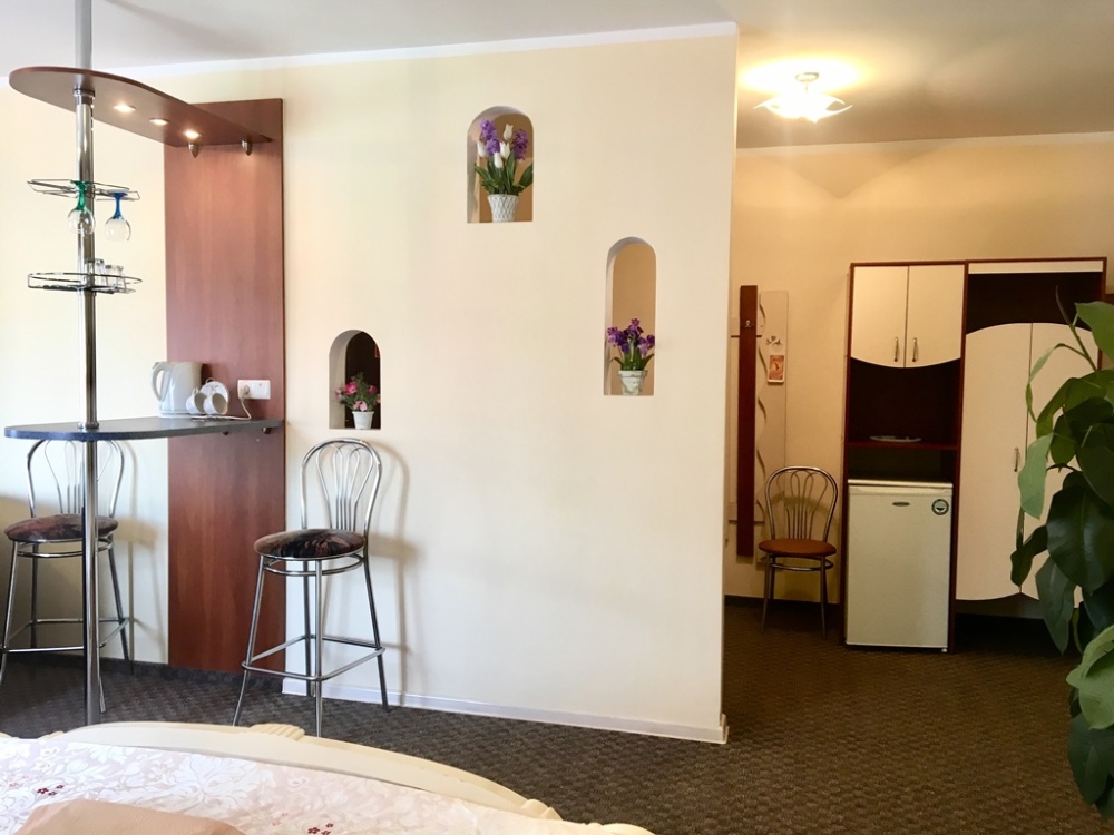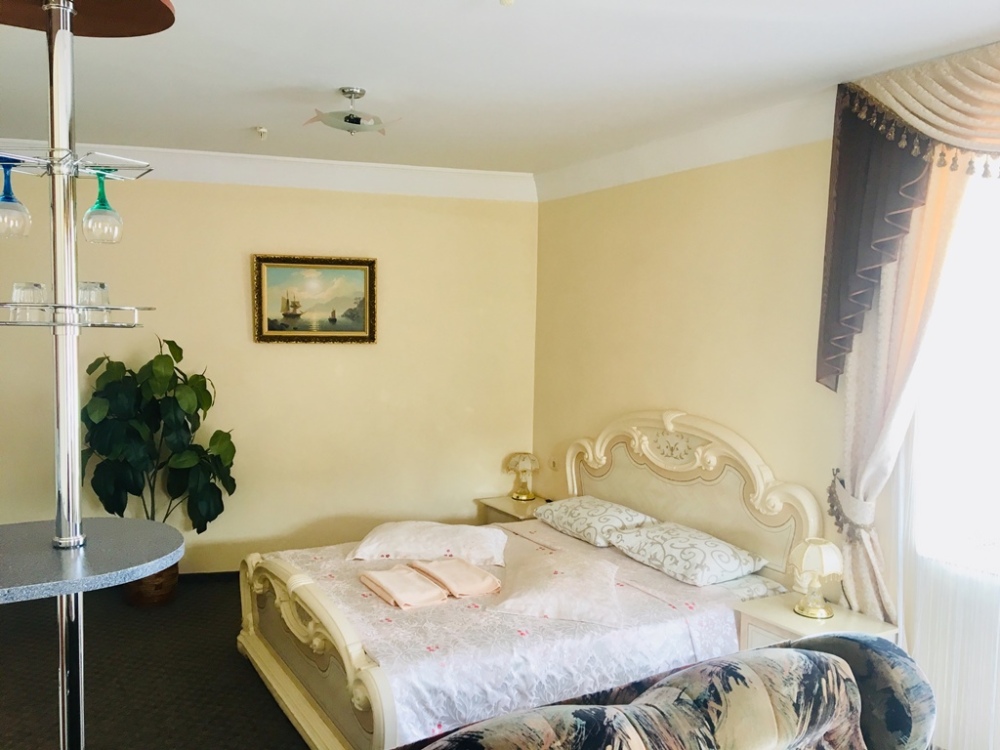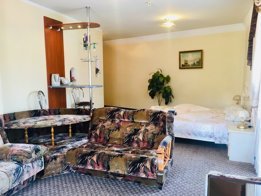 В номере: двуспальная кровать, мягкий уголок, санузел с душевой кабиной, кондиционер, холодильник, сейф, ж/к телевизор, барная стойка, чайник, микроволновка, wi-fi.