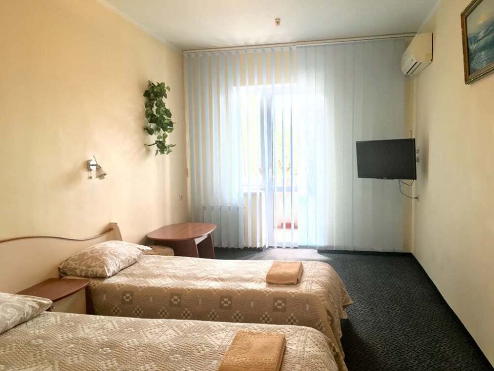 В номере: две односпальные кровати (отдельно или вместе), санузел с душевой кабиной, балкон (столик, стулья), кондиционер, холодильник, сейф, ж/к телевизор, wi-fi, чайник.