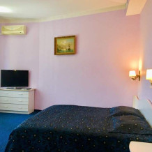 В номере: двуспальная кровать или две односпальные кровати, санузел с душевой кабиной, кондиционер, холодильник, сейф, ж/к телевизор, wi-fi.