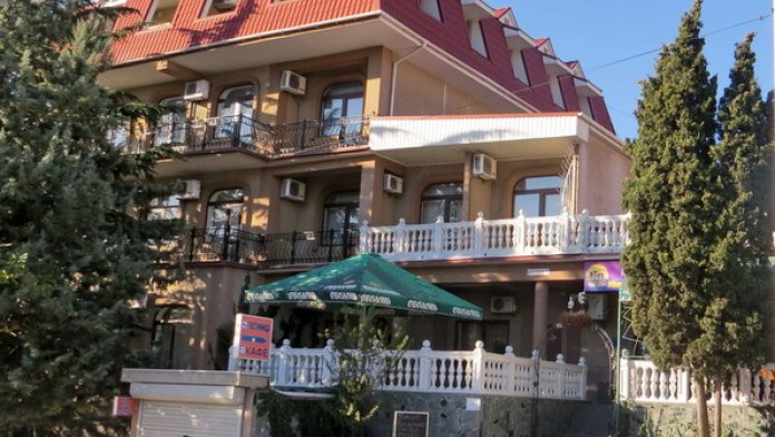 Гостиница расположена в центре курортного города Алушта на южном берегу Крыма. Для тех кто знаком с городом – это в районе старого центрального рынка и бывшей городской бани. Расстояние до центральной набережной Алушты и моря примерно 8 минут ходьбы. Дорога к морю идет вдоль речки в тени деревьев.