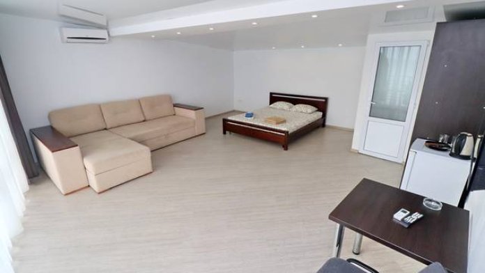 Все номера - комфортабельные и просторные, с современной мебелью и ремонтом, ортопедическими кроватями, большим плазменным телевизором, с панорамным видом на море и горы.