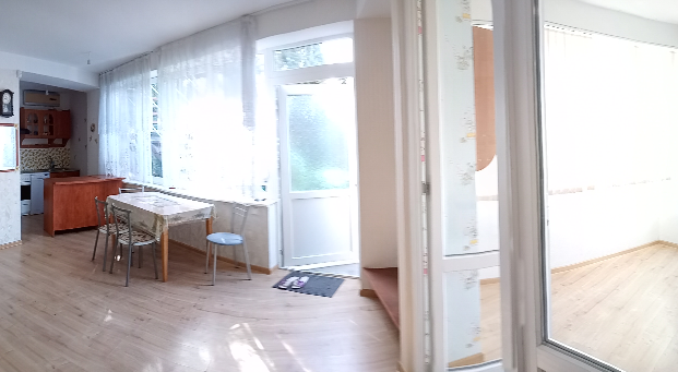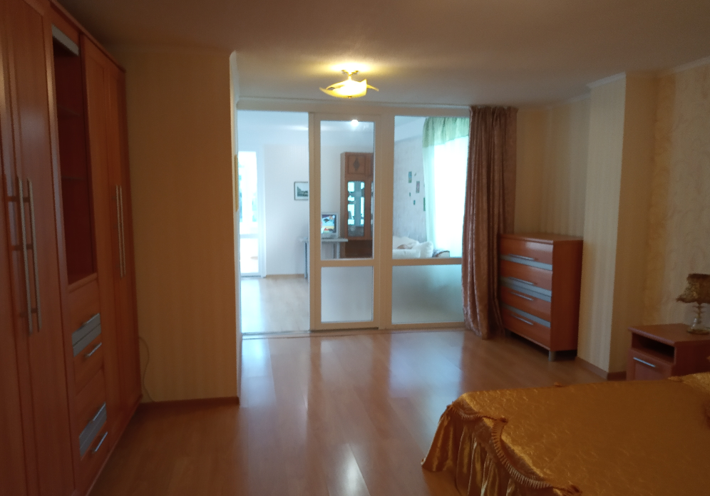 Две изолированные комнаты и одна проходная, совмещённая с кухней. 2 санузла, один из которых с душем, находится в изолированной спальне, а 2 в проходной комнате. В каждой комнате двуспальные спальные места (одна двуспальная кровать, два раскладных дивана и двухъярусная кровать для детей) - всего 8 мест. Есть возможность поставить раскладушку.