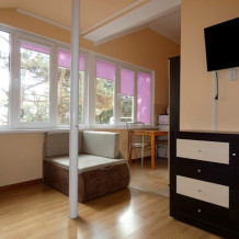 На территории нашего гостевого дома, для удобства наших постояльцев, мы оборудовали места для отдыха с беседкой и комплектами парковой мебели, а наш уютный весь утопающий в зелени и цветах двор, не только порадует Вас, но и спасет от летнего зноя. В номерах и прилегающей к ним территории работает безлимитный Wi-Fi интернет. Для любителей здорового питания в каждом номере есть кухни со всем необходимым для самостоятельного приготовления пищи. А также всегда вкусно и недорого покушать Вы можете в кафе расположенном по соседству.