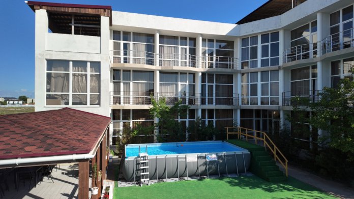 В гостевом доме организовано питание, зона барбекю, собственная парковка, зона отдыха, размещение в номерах люкс класса.