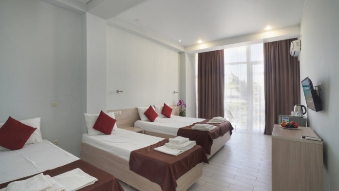 Просторный трехместный номер с балконом, возможно установить дополнительное место - раскладушку.