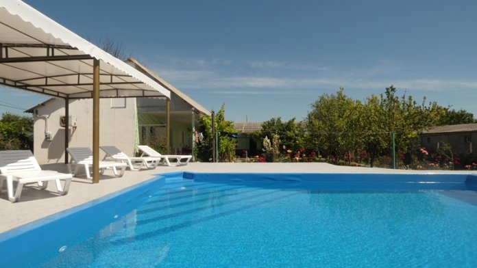 На территории есть большой двор с беседками, место для парковки авто, бассейн.