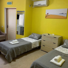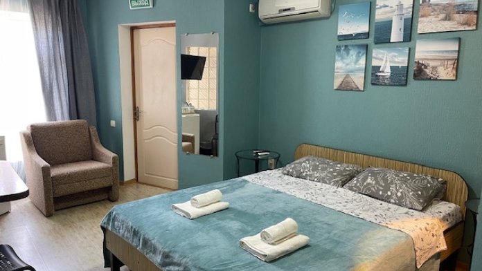 Для бронирования доступны номера категорий: Стандарт и Семейный. Каждый номер оснащен всем необходимым: кроватью, телевизором, кондиционером, столиком, собственной ванной комнатой.