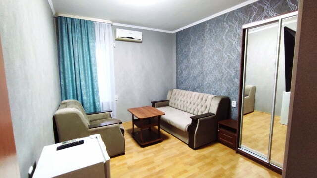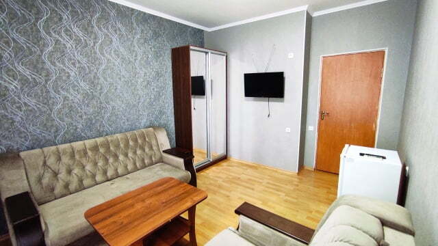 В каждом номере свой отдельный санузел с душем, телевизор, кондиционер, холодильник и современнейший дизайн комнат.
