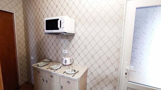 В коридоре есть мини-кухня со своей посудой, микроволновкой.