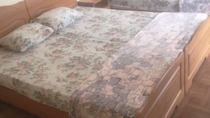 Двуспальная кровать (или две раздельные) плюс две раздельные, шкаф, прикроватные тумбочки, вешалка, зеркало.
