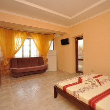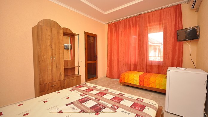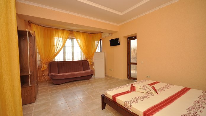 Гостевой дом состоит из 30 номеров категории «люкс» различной вместимости. Номера оснащены балконами, располагают удобной мебелью и современной бытовой техникой. В каждом номере к Вашим услугам: холодильник, чайник, посуда, кондиционер, спутниковое телевидение, телевизор. Есть доступ в интернет Wi-Fi.
