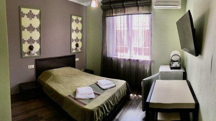 В доме всего 20 комнат. Все комнаты имеют индивидуальный дизайн и прекрасный вид. Мы предлагаем номера с кухней в номере и номера с общей кухней для приготовления пищи. Каждый номер оборудован туалетом и душем, в нем есть доступ к горячей и холодной воде. Номера оборудованы холодильником, кондиционером, телевизором, феном, собственным сан.узлом, есть выход в интернет через Wi-Fi. В номере хорошая мебель, кровати с ортопедическими матрасами.